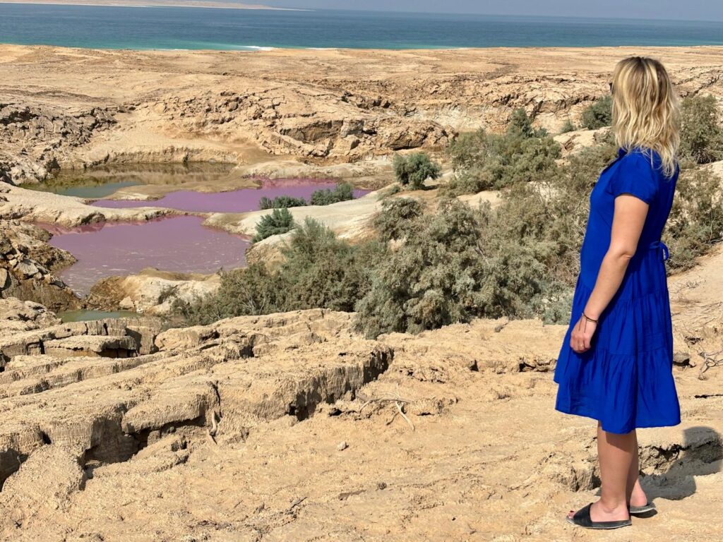 Když jsme se nachytřili, došli jsme si dát sprchu, zabalili si věci a dali jsme se autem k růžovému jezírku, které jsme měli kousek od hotelu a kterých je v okolí Mrtvého moře několik.
