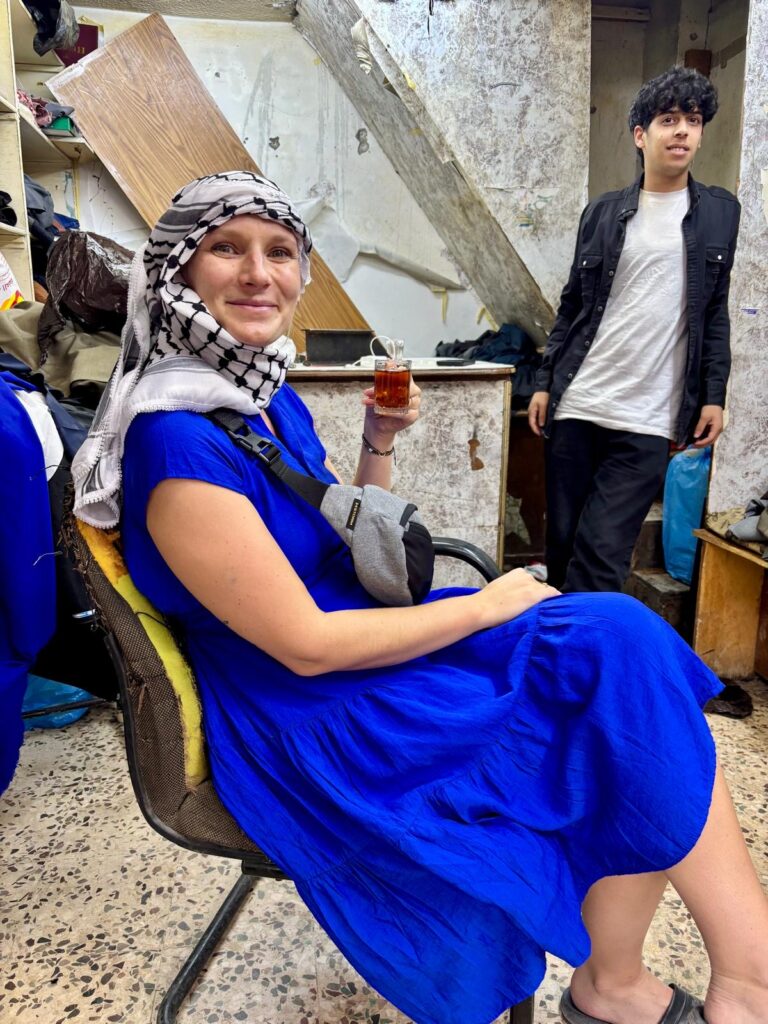 A protože nakonec zbylo ještě mnoho času do setmění, tak jsme se šli podívat po městě, kde jsou tradiční arabské restaurace a obchůdky. Koupili jsme si místní šátky na hlavu, které jsme se naučili vázat a byli jsme pozváni od jednoho krejčího a jeho syna na čaj. Jordánci jsou neskutečně pohostinní a tím, že Vás pozvou na čaj, tak Vás přijímají mezi sebe. Nic za to nechtějí, je to jejich národní zvyk a nátura. Dali jsme si tedy čerstvě uvařený černý čaj, povídali jsme si s nimi o rodině a životě tady a u nás. Byli oba opět velmi milí a když mladík nevěděl něco anglicky, hned to zadal do překladače.