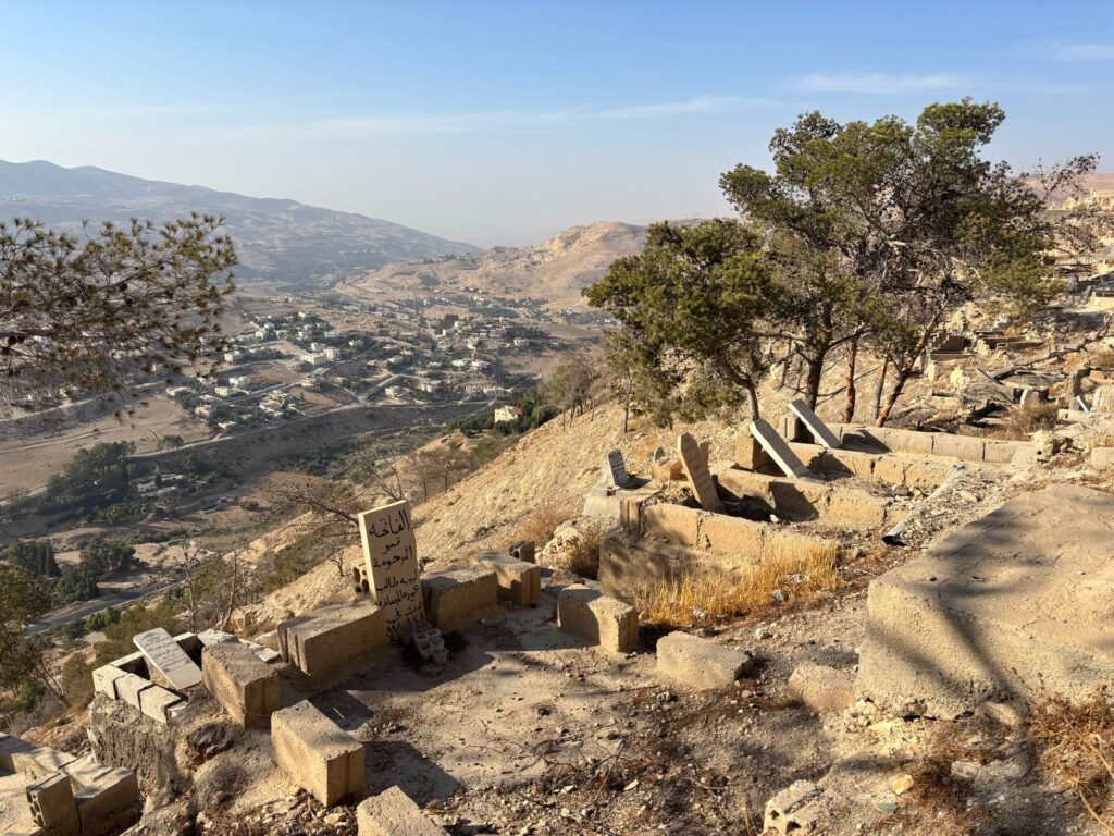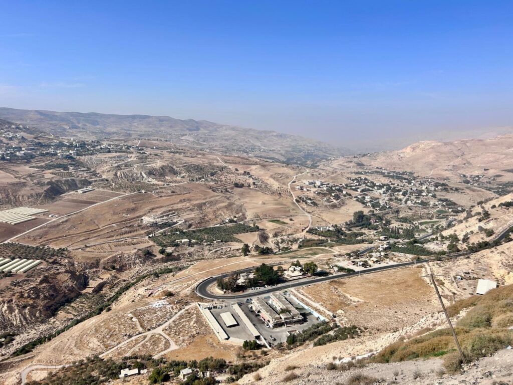 Když jsme se ubytovali, vyšli jsme si na oběd do vedlejší restaurace, kde jsme si dali typické jordánské jídlo s názvem Mansaf, arabský salát a čerstvý džus z granátového jablka. Na odpoledne bylo v plánu nechat opravit prasklé kolo, abychom měli pro všechny případy reservu. Také jsme se snažili najít správnou cestu k Wádí Al Karak, ale nějak jsme neměli štěstí a když jsme přijeli na místo, zjistili jsme, že bychom museli z obrovského kopce po serpentinách “někam” pěšky, abychom se dostali k soutěsce. Protože se tady stmívá okolo 6. neměli jsme už dostatek času na to, abychom se na výlet vydali. Sedli jsme tedy zase do auta a jeli zpět, nejprve jsme se podívali na místní hřbitov, který nás zaujal a pak jsme zaparkovali u hotelu a šli omrknout hrad, ze kterého jsou krásné výhledy po Karaku a okolních horách.