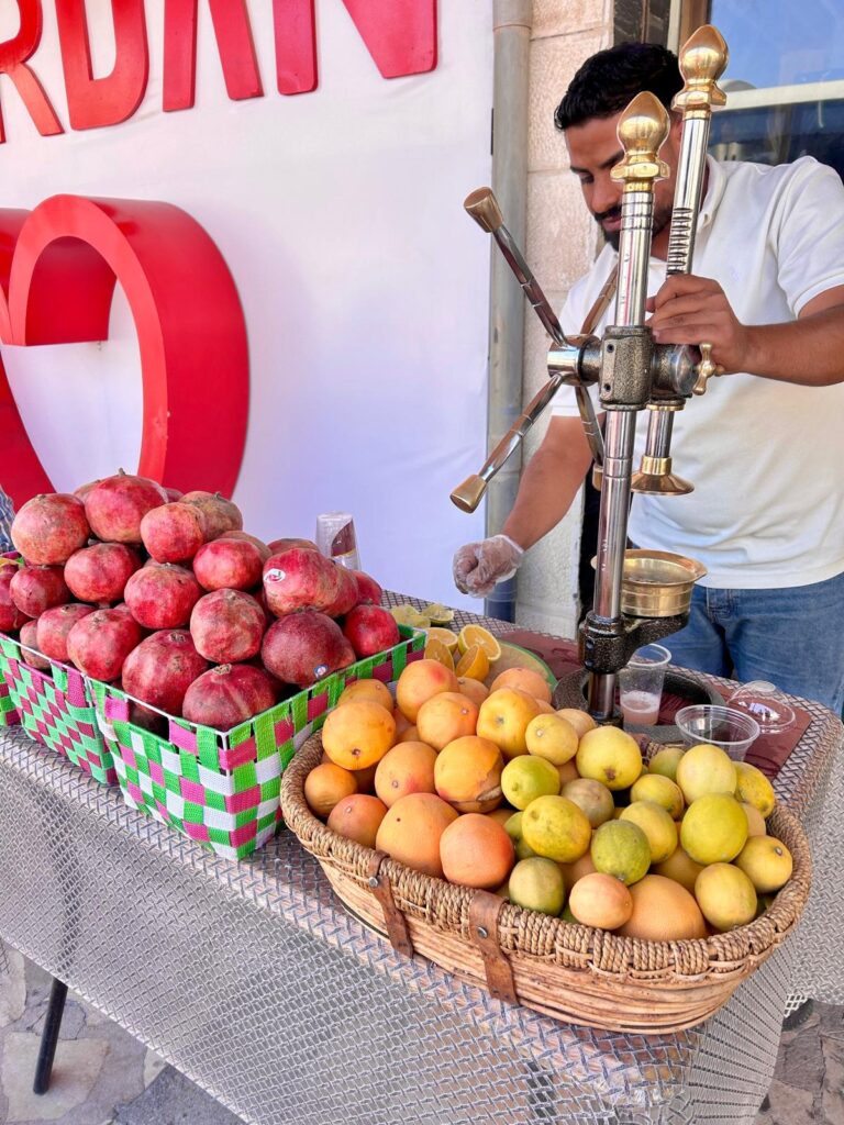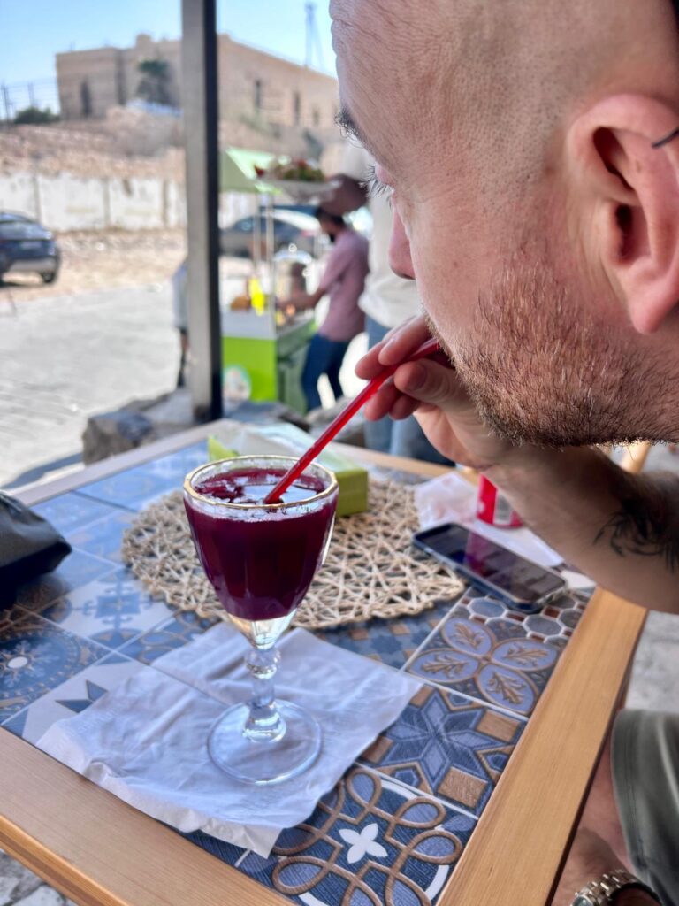 A protože nakonec zbylo ještě mnoho času do setmění, tak jsme se šli podívat po městě, kde jsou tradiční arabské restaurace a obchůdky. Koupili jsme si místní šátky na hlavu, které jsme se naučili vázat a byli jsme pozváni od jednoho krejčího a jeho syna na čaj. Jordánci jsou neskutečně pohostinní a tím, že Vás pozvou na čaj, tak Vás přijímají mezi sebe. Nic za to nechtějí, je to jejich národní zvyk a nátura. Dali jsme si tedy čerstvě uvařený černý čaj, povídali jsme si s nimi o rodině a životě tady a u nás. Byli oba opět velmi milí a když mladík nevěděl něco anglicky, hned to zadal do překladače.
