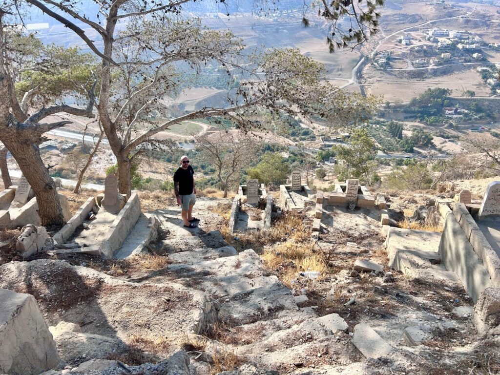 Když jsme se ubytovali, vyšli jsme si na oběd do vedlejší restaurace, kde jsme si dali typické jordánské jídlo s názvem Mansaf, arabský salát a čerstvý džus z granátového jablka. Na odpoledne bylo v plánu nechat opravit prasklé kolo, abychom měli pro všechny případy reservu. Také jsme se snažili najít správnou cestu k Wádí Al Karak, ale nějak jsme neměli štěstí a když jsme přijeli na místo, zjistili jsme, že bychom museli z obrovského kopce po serpentinách “někam” pěšky, abychom se dostali k soutěsce. Protože se tady stmívá okolo 6. neměli jsme už dostatek času na to, abychom se na výlet vydali. Sedli jsme tedy zase do auta a jeli zpět, nejprve jsme se podívali na místní hřbitov, který nás zaujal a pak jsme zaparkovali u hotelu a šli omrknout hrad, ze kterého jsou krásné výhledy po Karaku a okolních horách.