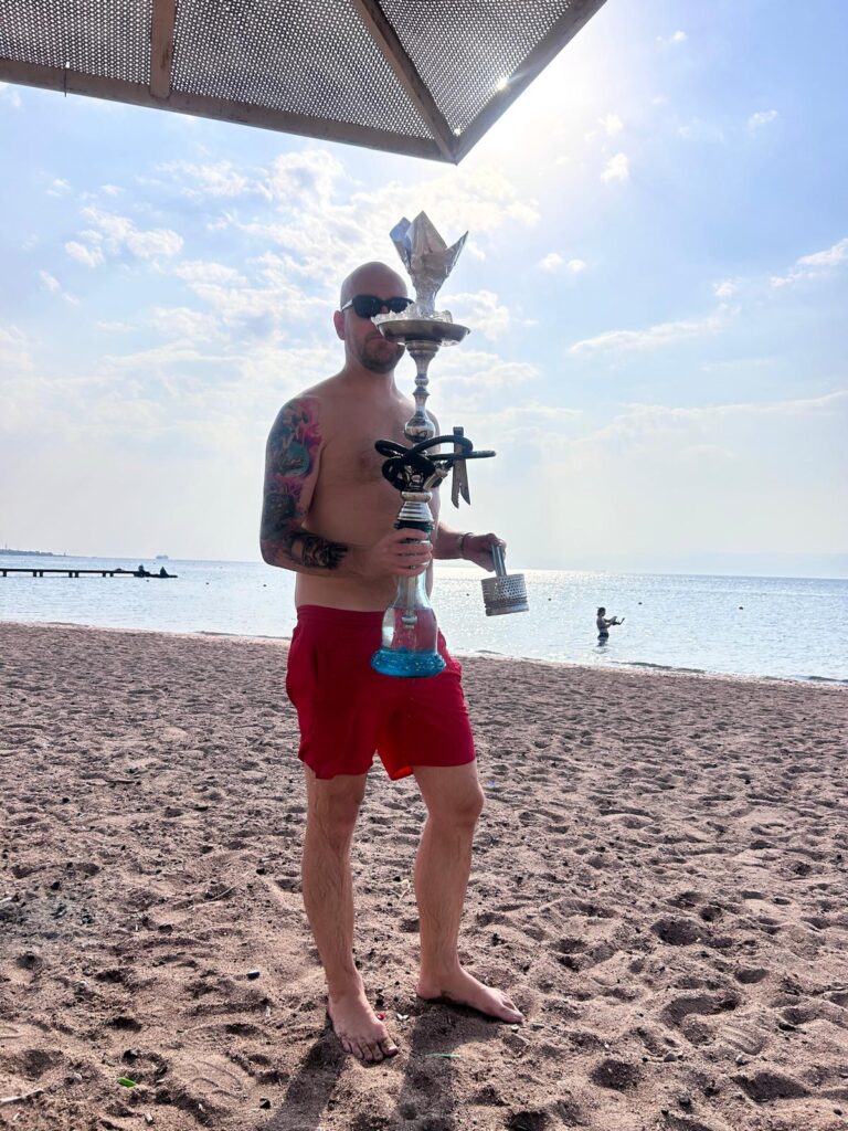 Objednali jsme si na pláž shishu a šli najít místo pro náš odpoledne relax. Pláž byla stejně jako předchozí den téměř prázdná v tento čas.