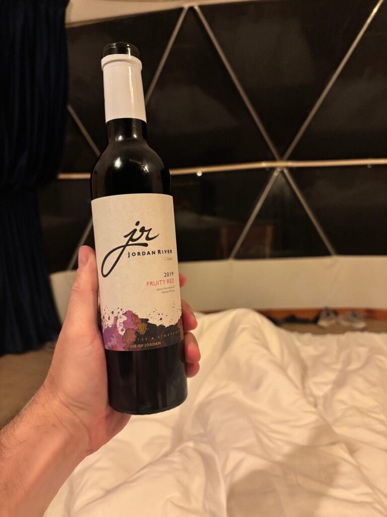 A protože se nám zalíbila pohoda a atmosféra našeho domečku, hned po večeři jsme se tam vrátili, hráli karty, ochutnali jordánské víno, které je jednou z věcí, co se doporučuje vyzkoušet při návštěvě této země. Oběma nám moc chutnalo.
